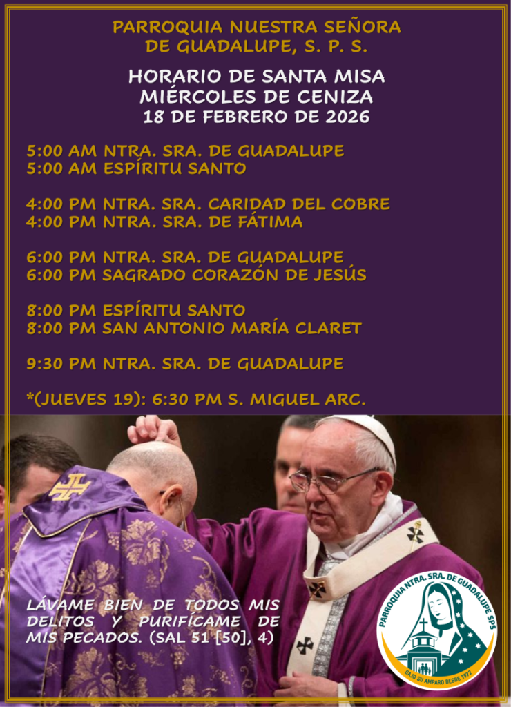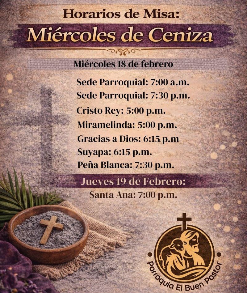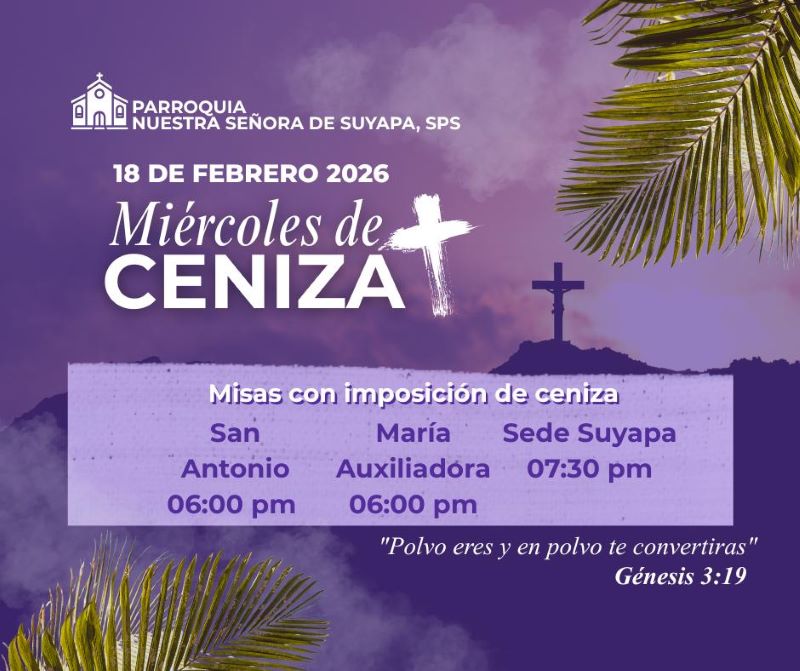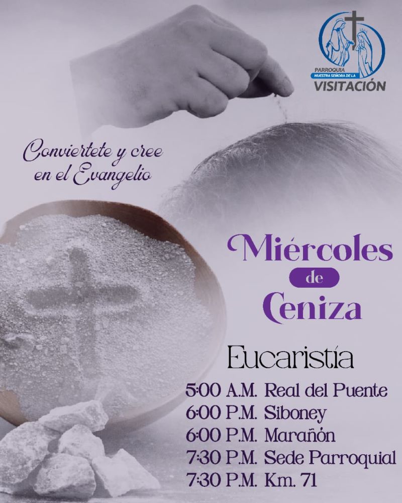 El miércoles 18 de febrero, da inicio la Cuaresma con la imposición de la Ceniza. Todas las parroquias de nuestra Arquidiócesis este día tendrán eucaristías en diferentes horarios.