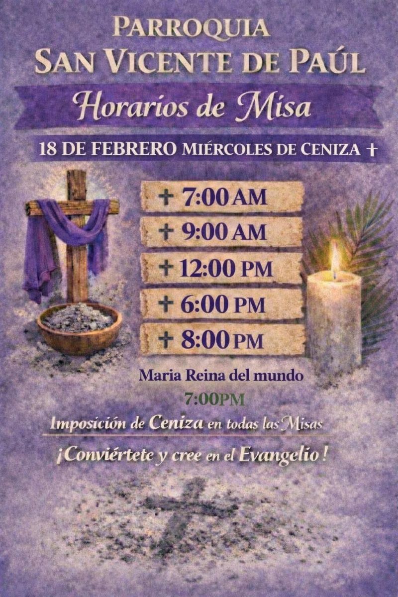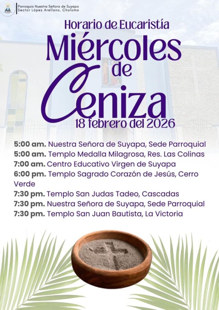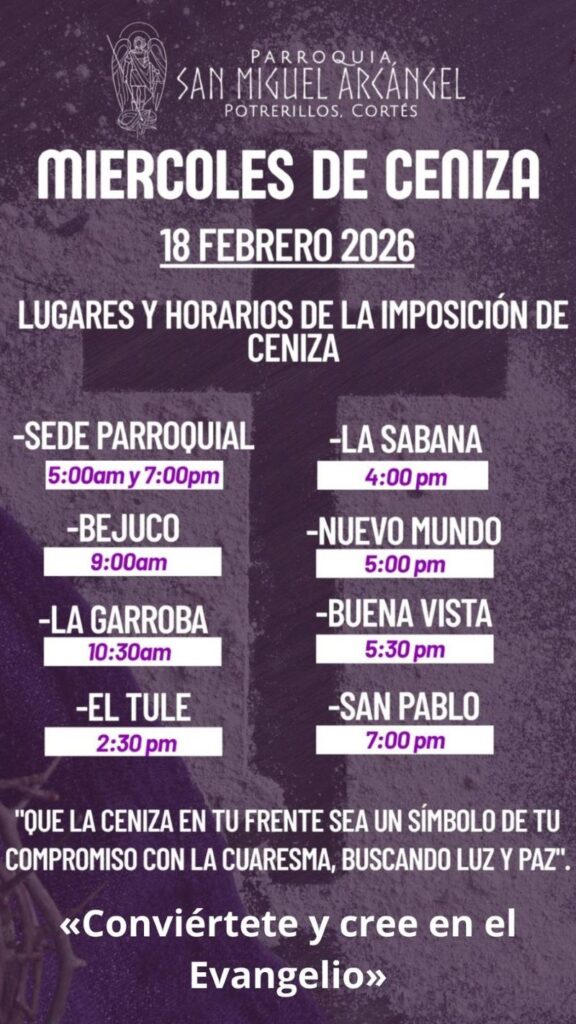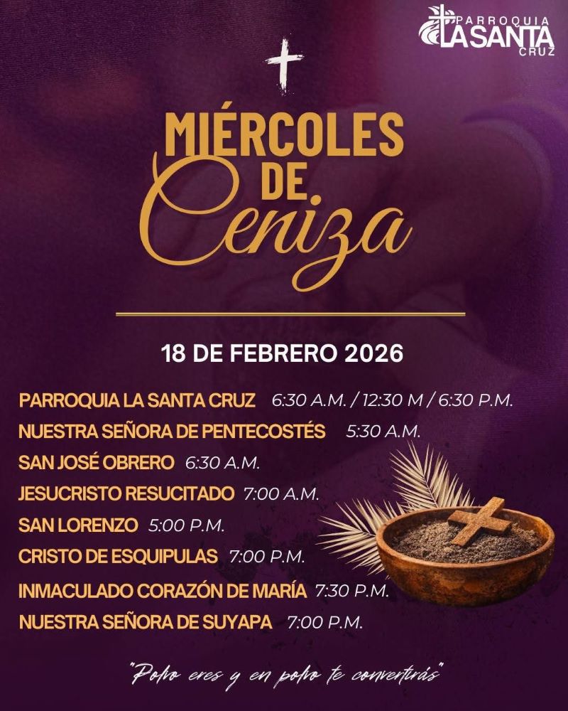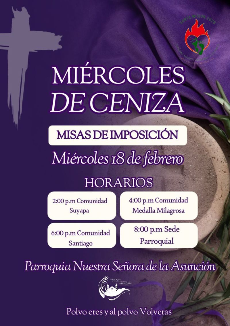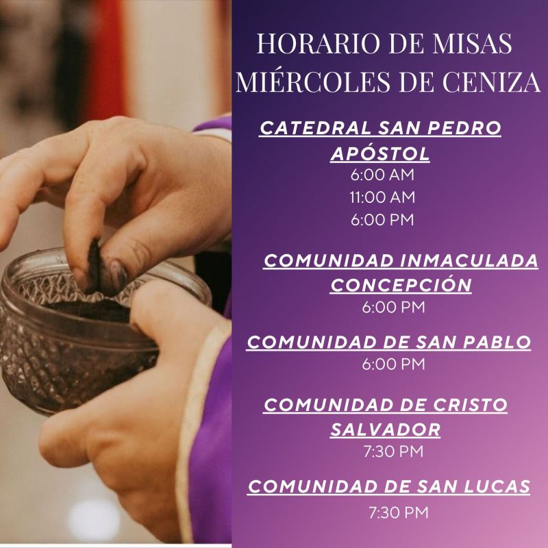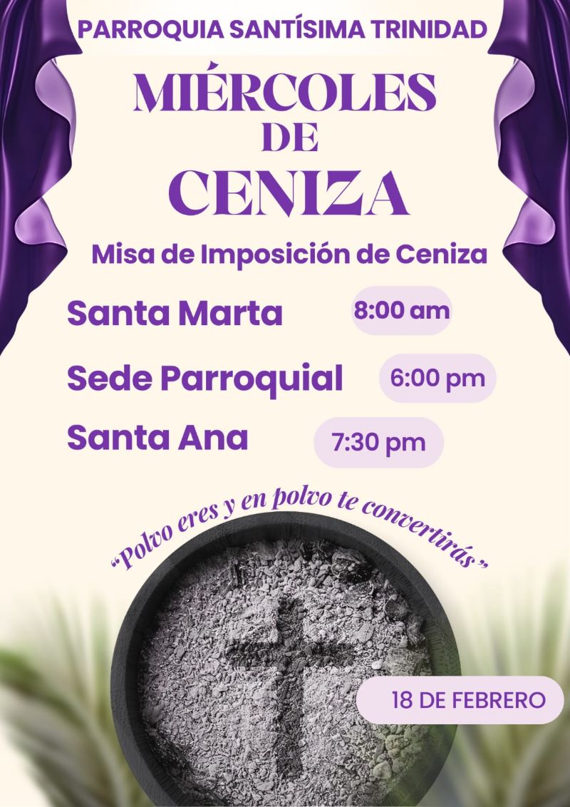 El miércoles 18 de febrero, da inicio la Cuaresma con la imposición de la Ceniza. Todas las parroquias de nuestra Arquidiócesis este día tendrán eucaristías en diferentes horarios.
