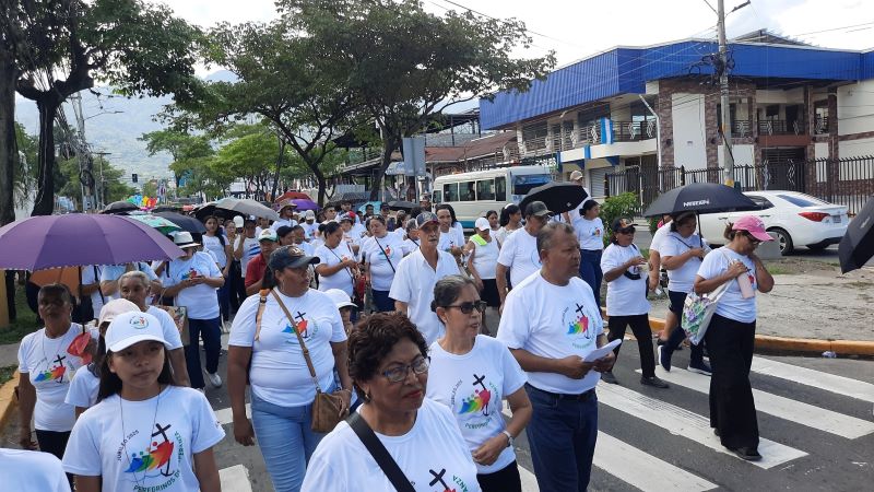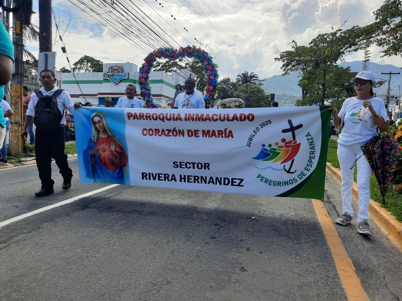 La parroquia Inmaculado Corazón de María del sector Rivera Hernández, peregrinó hacia la Catedral Metropolitana San Pedro Apóstol el domingo 21 de septiembre, los feligreses fueron acompañados por su párroco el presbítero Jeremías Lemus, el vicario Wilmer Antonio Aguilar y nuestro obispo emérito, Monseñor Ángel Garachana.