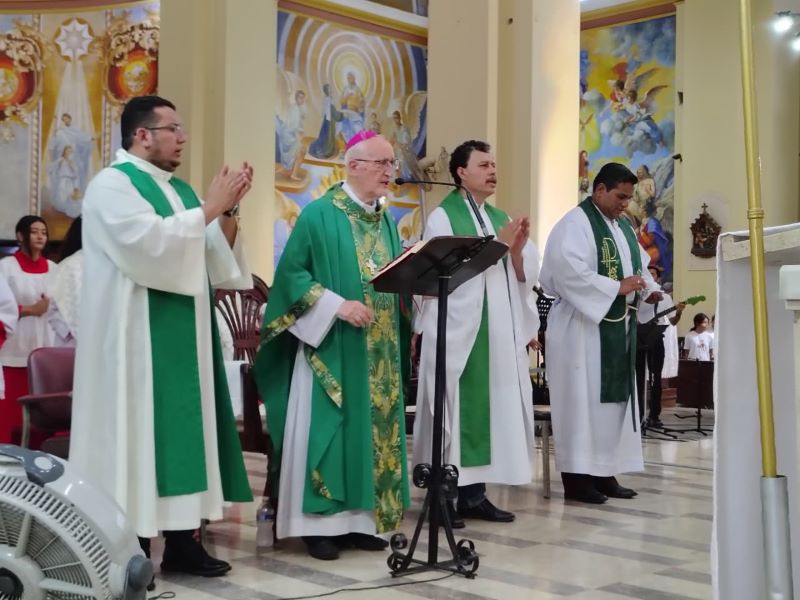 La Eucaristía fue presidida por Monseñor Ángel Garachana quien en su homilía resaltó: “Nuestra Iglesia católica está celebrando el 31 jubileo ordinario de 2025 y les dejaré algunas enseñanzas de la peregrinación jubilar: La primera es que hemos peregrinado juntos como parroquia, como discípulos de Jesús, somos comunidad unida y reunida, somos su pueblo. En la segunda enseñanza, señaló que caminamos juntos con el Señor Jesucristo, conscientes que Jesús al ascender al cielo, no nos ha abandonado, está a nuestro lado en las alegrías y en las tristezas, en los logros y los fracasos, en la salud y en la enfermedad, en las pruebas y en las grandes satisfacciones, en los momentos del tabor (gloria) y en los momentos de calvario (cruz). De la Virgen María, el Obispo recordó María, la madre de Jesús, es nuestra madre, ella también Asunta al cielo con Jesús no nos abandona, ella es la madre que nos auxilia, acompaña, está con nosotros y nos tiene en su corazón”.