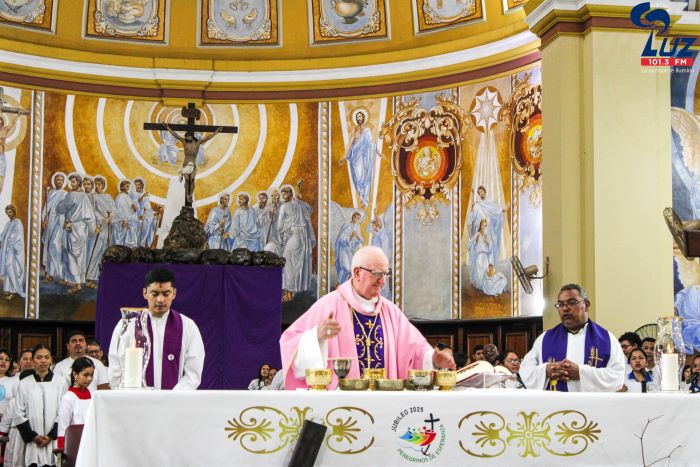 “Hoy cuarto domingo de Cuaresma es el domingo de la alegría por esta razón llevamos el color rosado, es un color de gozo, de júbilo. El Evangelio nos habla de sentirnos amados y perdonados por Dios. Meditando la Palabra del Señor podemos entender más como es el corazón de Dios, un corazón misericordioso, compasivo, lleno de amor, un corazón que nos ama. Este año de esperanza vivamos este Jubileo en nuestros corazones queriendo ser como el padre misericordioso, el padre de amor” concluyó.