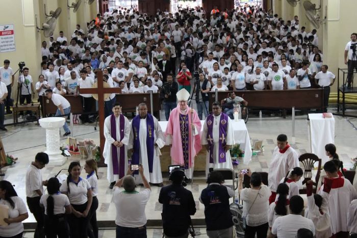 La parroquia Nuestra Señora de Lourdes de Choloma, peregrinó a la Puerta de la Esperanza de la catedral Metropolitana de San Pedro Sula el domingo 30 de marzo, más de 2,000 fieles peregrinaron desde la Plaza las Banderas, acompañados de su párroco, Adonis Saénz y los vicarios padre Orlando González y el padre Luis Carrasco.