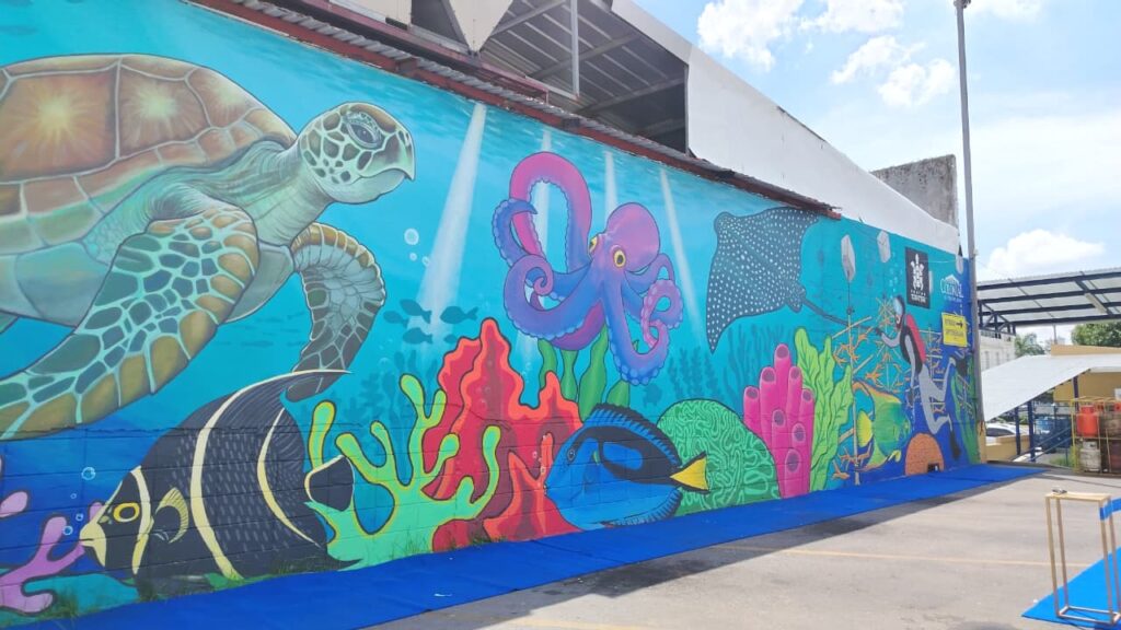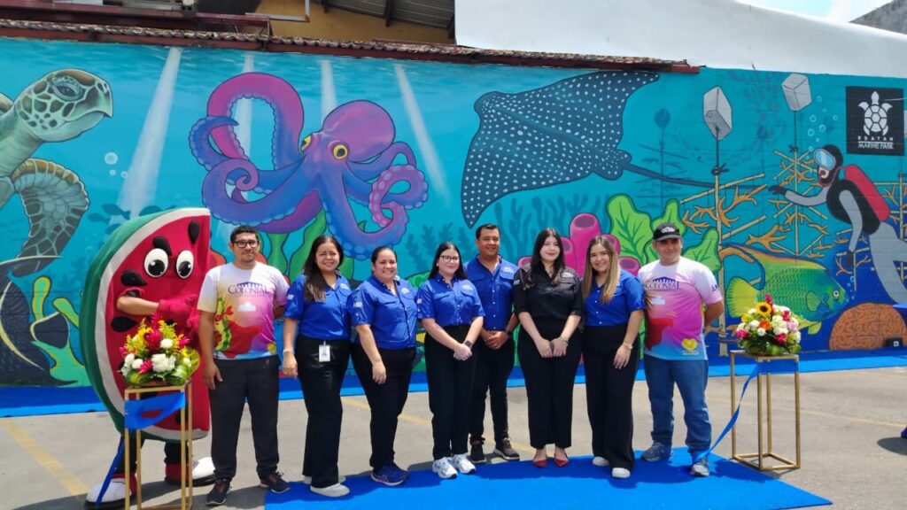 El mural refleja el majestuoso trabajo que realiza Roatán Marine Park en el segundo arrecife coralino más grande del mundo, que nos pertenece a todos los hondureños, y simboliza la colaboración entre voluntarios, artistas y la comunidad.