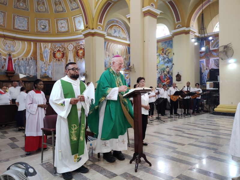 Monseñor Miguel Lenihan ofició la Eucaristía a las 7:30 a.m. en la catedral San Pedro Apóstol, el domingo 19 de octubre, en la celebración del Domingo Mundial de las Misiones, DOMUND 2025. La misa fue concelebrada por el padre José Antonio Amaya, responsable arquidiocesano de misiones.