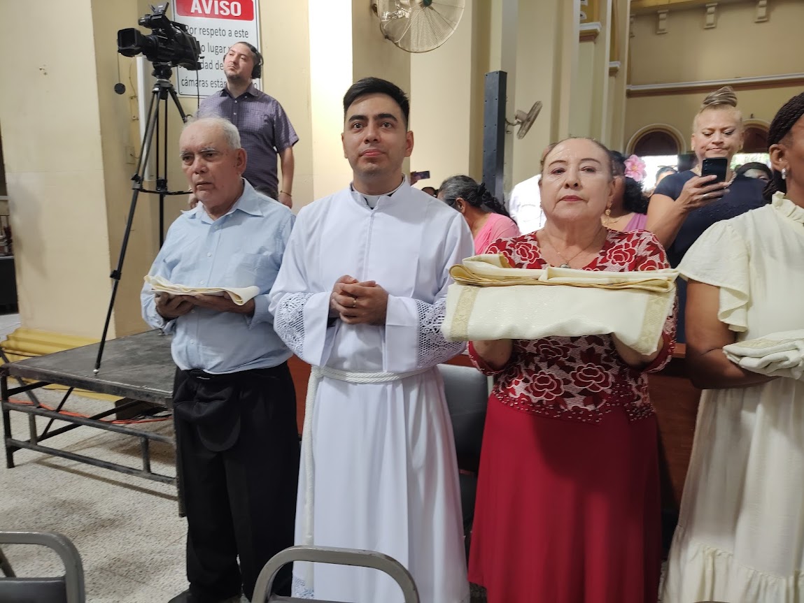 El rito inició con la petición de ordenación diaconal que realizó el padre Héctor Banegas ante el Obispo, manifestando que después de consultar al pueblo cristiano, da testimonio de que han sido considerados dignos. A lo que Monseñor Miguel respondió: “Con el auxilio de Dios y de Jesucristo, nuestro Salvador, elegimos a estos hermanos nuestros para el Orden de diáconos”.