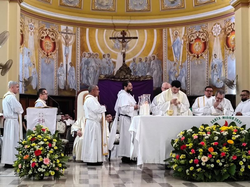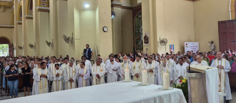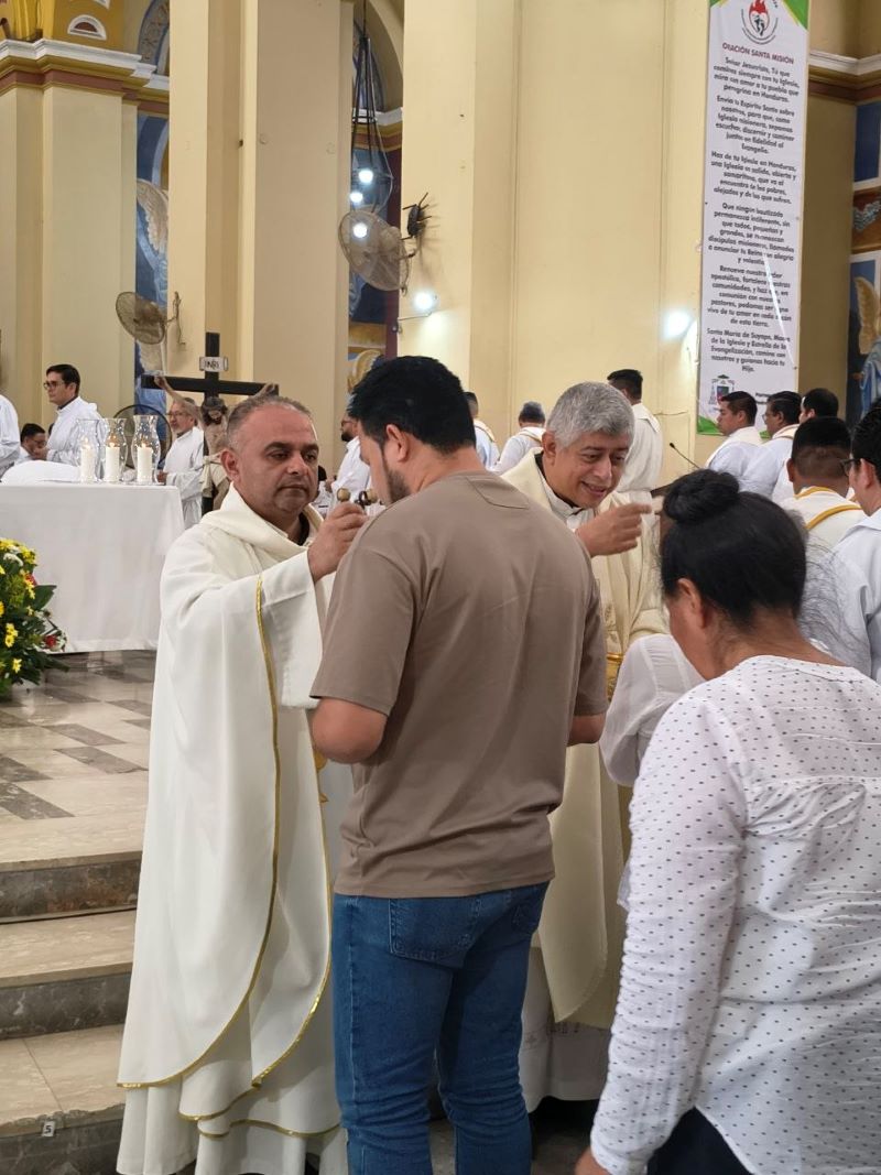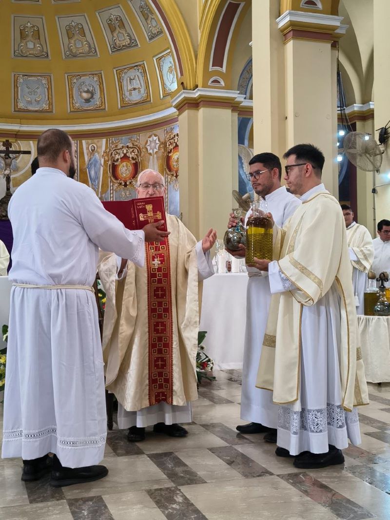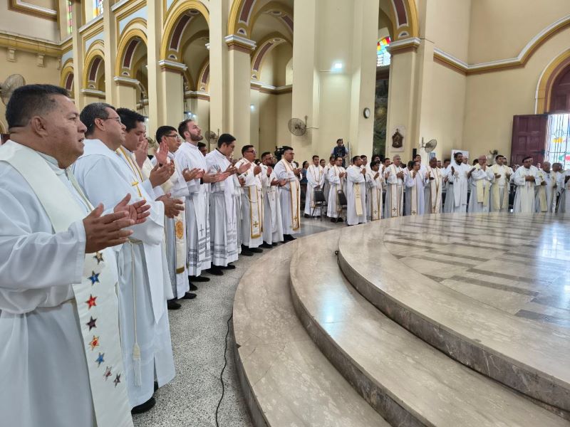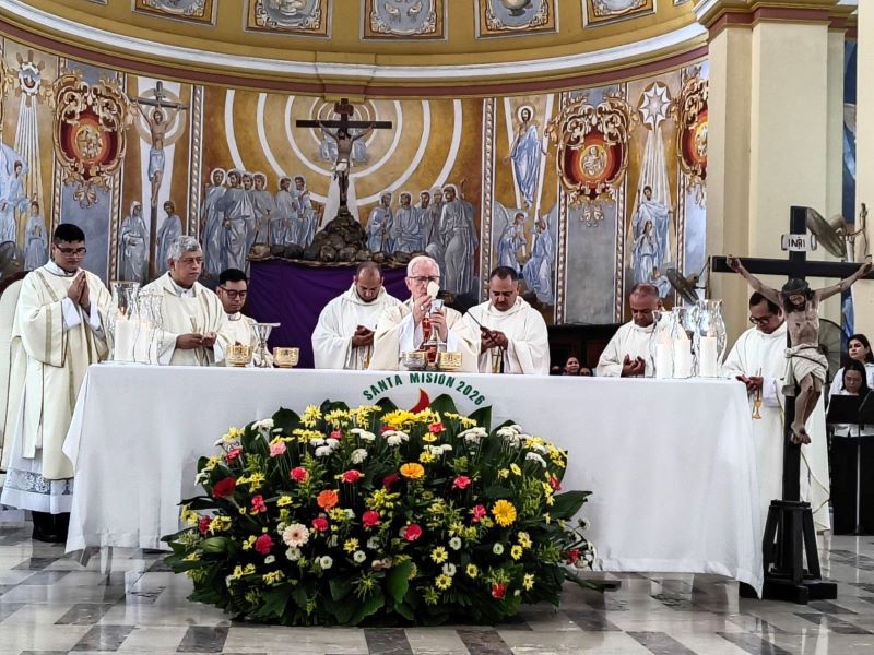 “En esta Misa Crismal, me dirijo a ustedes, sacerdotes, que han sido ungidos y consagrados con una acción especial del espíritu para realizar el ministerio presbiteral en bien del pueblo de Dios, de manera que los primeros que deben asumir de corazón esta misión arquidiocesana son ustedes, los presbíteros que están al servicio de este pueblo de Dios que peregrina en este departamento de Cortés. Me atrevo a pedirles que realmente realicen este ministerio. Este año es una nueva oportunidad, hermanos; en el ministerio ordenado, ustedes son los responsables en su parroquia de organizar, animar y motivar a todos los fieles para que la misión sea una gracia grande del Señor para esta Arquidiócesis. No estamos solos, contamos con esa acción del espíritu. Oremos, pues, al espíritu para que nos anime, fortalezca e ilumine en la animación, motivación y organización de la Santa Misión 2026”.
