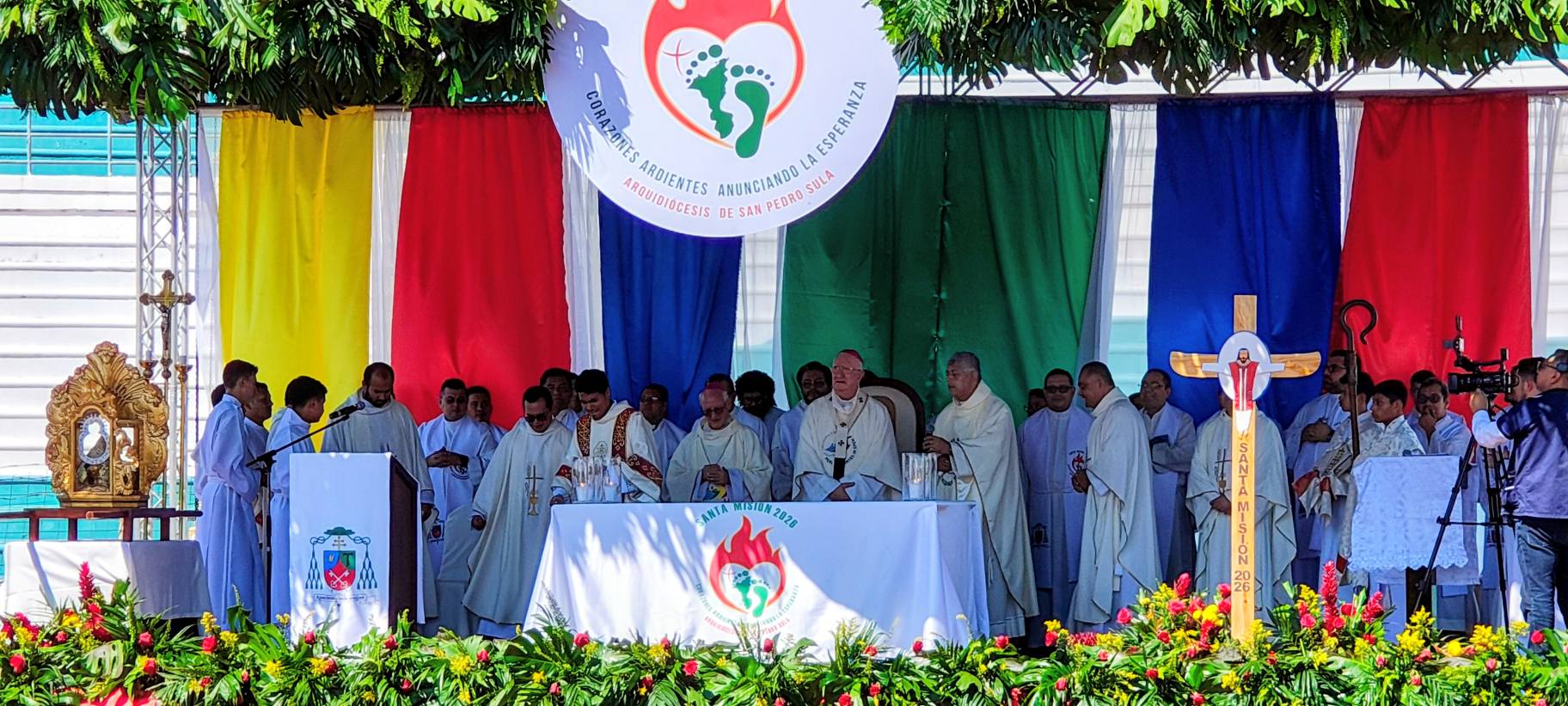 En un encuentro multitudinario realizado el domingo 15 de febrero en el estadio Olímpico Metropolitano, nuestra Arquidiócesis de San Pedro Sula realizó la apertura de la Santa Misión 2026. Esta jornada congregó a este pueblo de Dios que peregrina en el departamento de Cortés como una sola Iglesia sinodal.