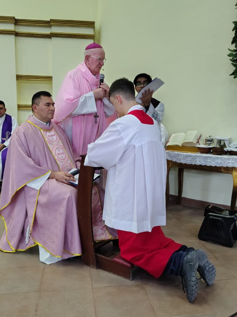 Durante la Eucaristía se realizaron diferentes ritos como ser la entrega de: las llaves de la parroquia, la sede presidencial, el altar, la pila del bautismo, el confesionario, el ambón y las llaves del sagrario.