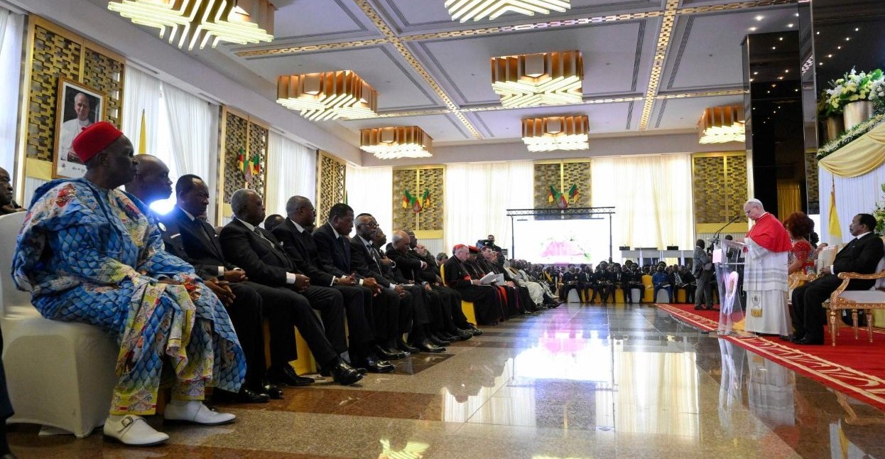 “¡Cuánta hambre y sed de justicia! ¡Cuánta sed de participación, de horizontes, de decisiones valientes y de paz! Es mi gran deseo llegar al corazón de todos, en particular de los jóvenes, llamados a dar forma, también política, a un mundo más justo. Deseo además manifestar la voluntad de reforzar los lazos de cooperación entre la Santa Sede y la República de Camerún, fundados en el respeto mutuo, en la dignidad de cada persona humana y en la libertad religiosa”.