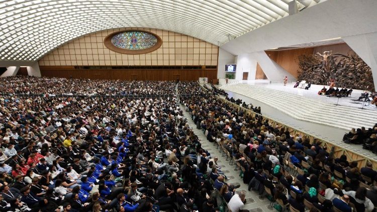 Los nombres de los alumnos, sobre todo los más animados, resuenan en el auditorio, coreados por los profesores, acompañados por música de Georges Bizet y Antonín Dvořák —y el Padrenuestro, justo después del discurso del Papa— interpretado por la Nueva Orquesta Nacional, la primera en la historia del sistema educativo italiano, bajo la dirección artística del Maestro Uto Ughi. Esto puede sonar como una reprimenda de los profesores, pero es una señal: de esto también se trata la escuela. «Cuando un profesor pronuncia bien tu nombre, te levanta el ánimo», afirman en su carta los jóvenes participantes en los talleres temáticos organizados por el Dicasterio de Cultura y Educación en colaboración con el Ministerio de Educación y Mérito. En los últimos días, estas iniciativas han contado con la participación de 800 alumnos y 200 profesores, representantes de 800 escuelas de toda Italia, además de delegaciones internacionales de todo el mundo.